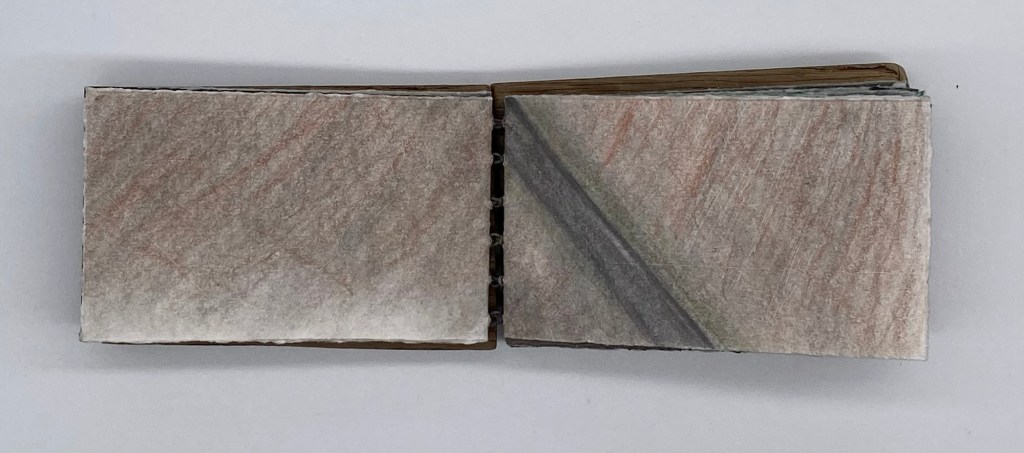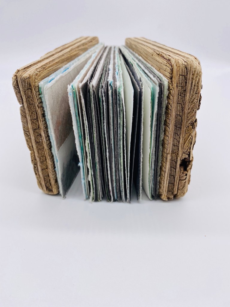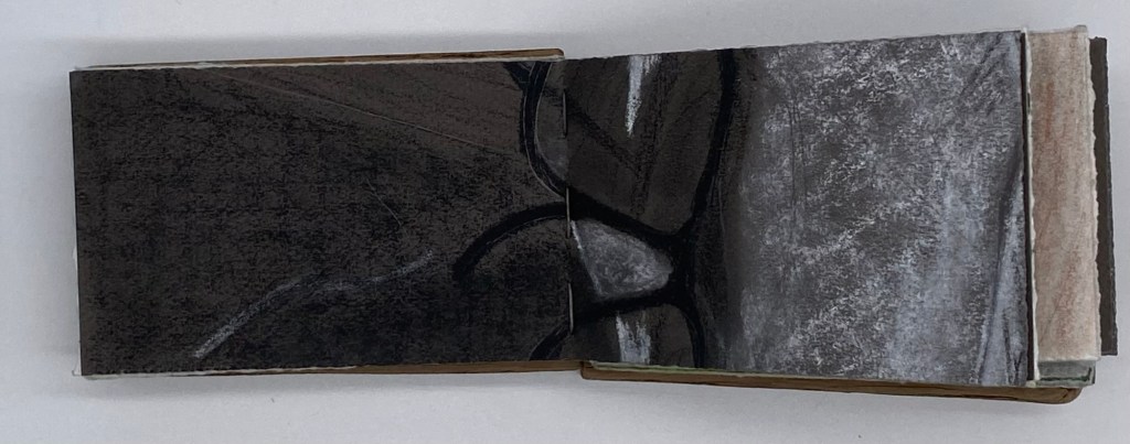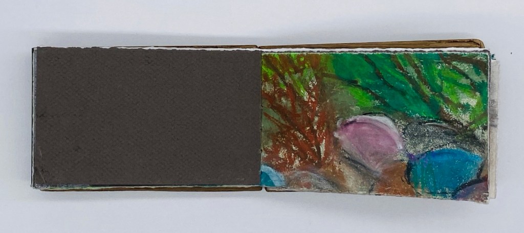 The leftover paint on this makes for a great front cover. Drawings are chopped up drawings from school.