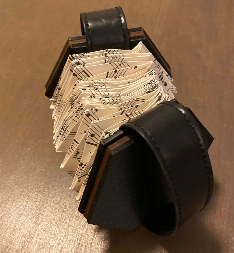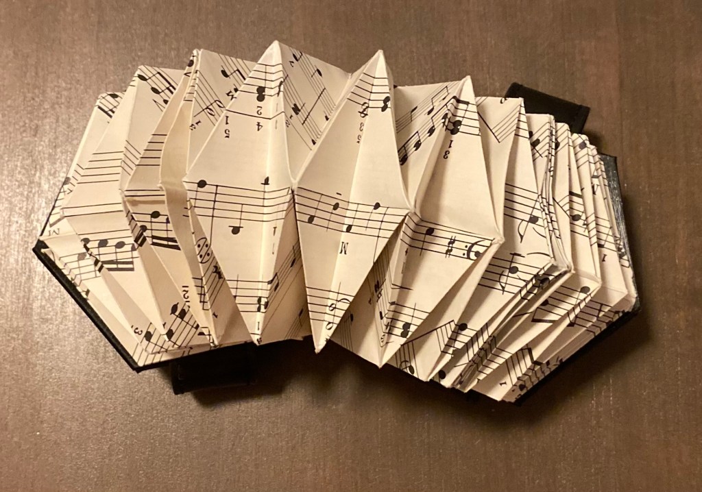 A little accordion made with old music book paper from a time when I played a real accordion.