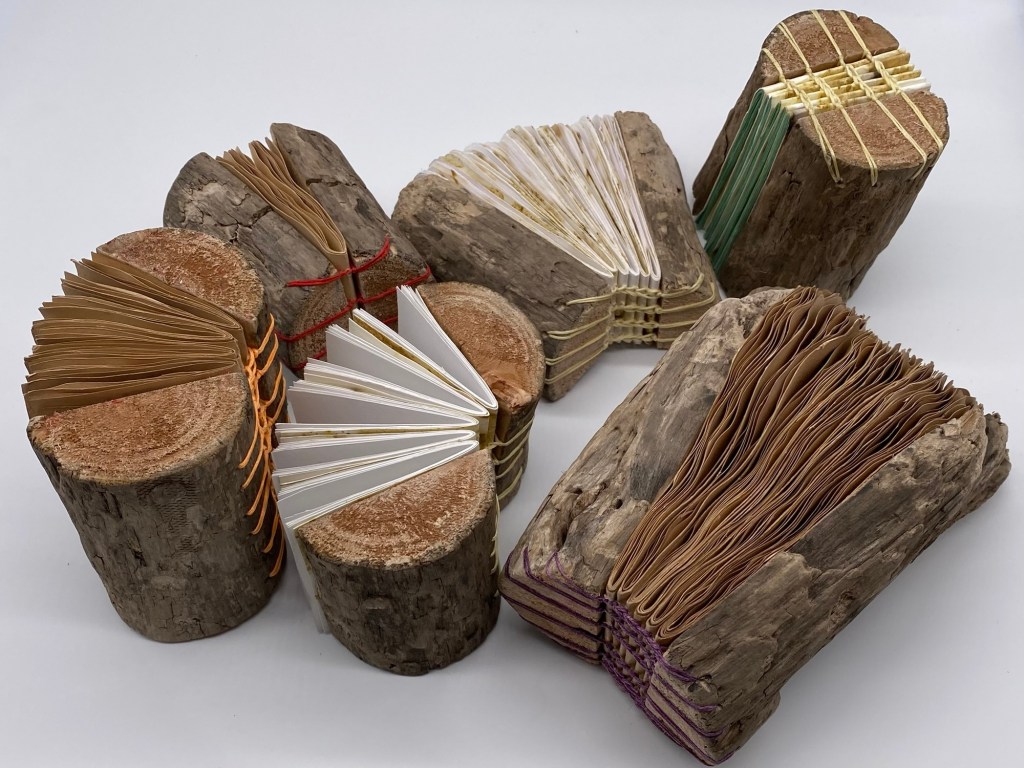 A single piece of driftwood turned into 6 books. Some pages tea dyed. Some ecodyed with eucalyptus leaves.