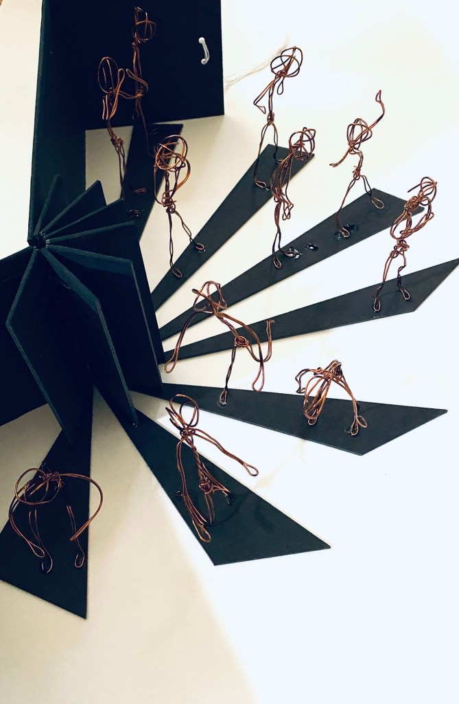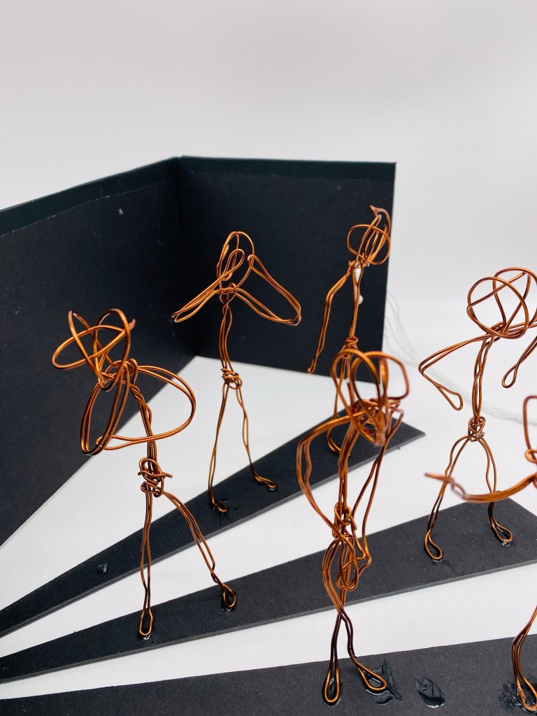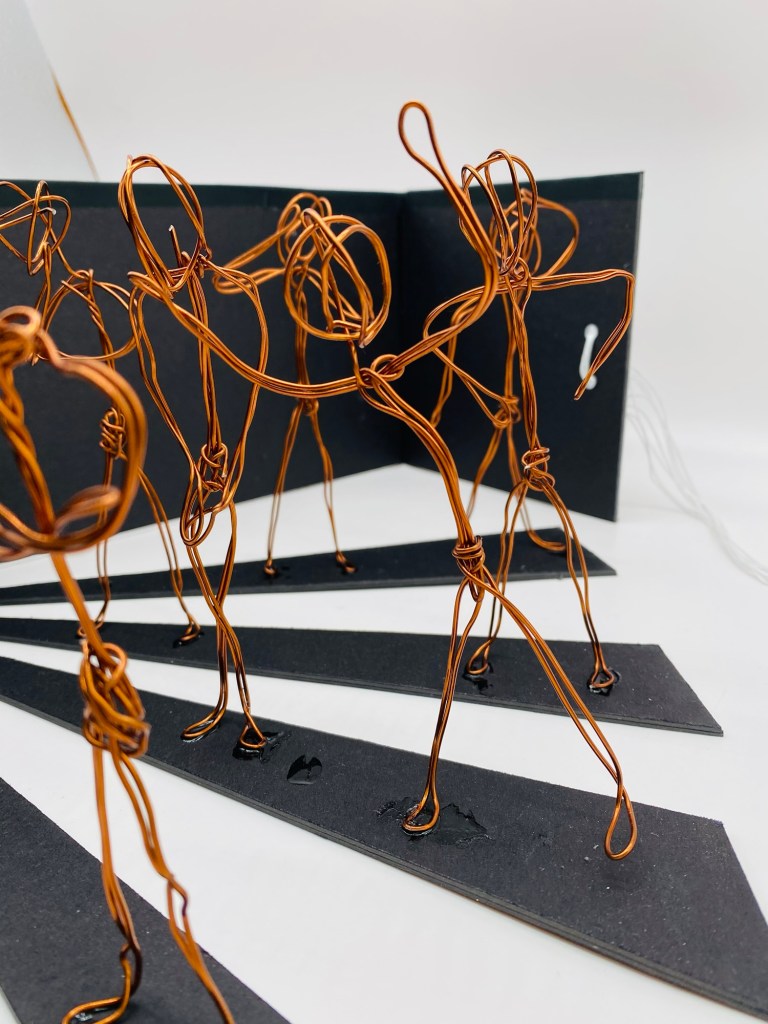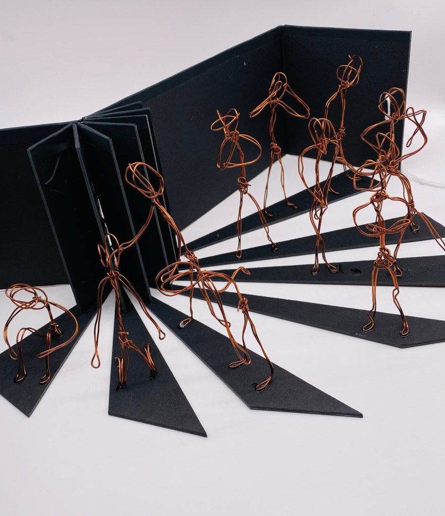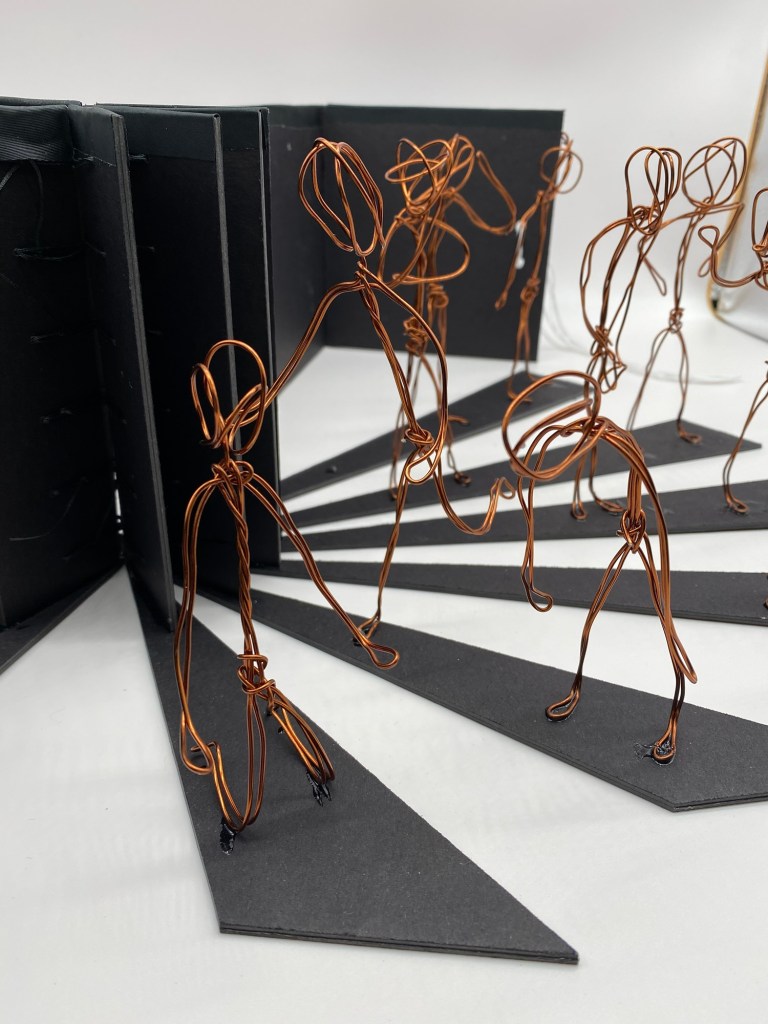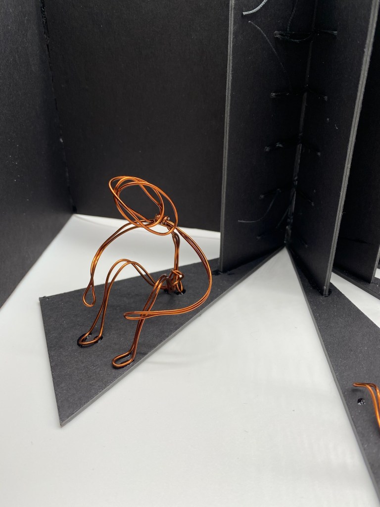 Making this “book” was a challenge. I visualized all sorts of combinations of accordions and scroll structures when a 3D coptic binding eureka’d its way into a light bulb above my head. The book is a bit unwieldy so I made a ‘wrap’ that turns it into a box for safe keeping. Except for the obvious blobs of glue I really enjoyed this structure and will probably revisit it in the future.