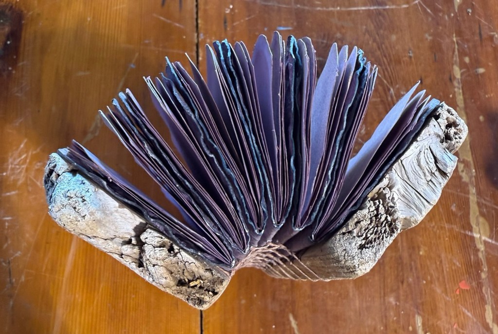 One of the frustrating and wonderful things about driftwood books is how they sometimes have to be made ābackwardsā but because they are sculptural thatās okay.