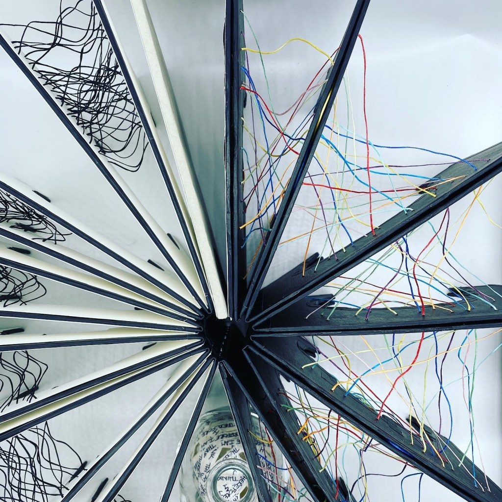 All together now. Half coptic bound, half accordion book book case. Protecting the fragile crystal skull book.
